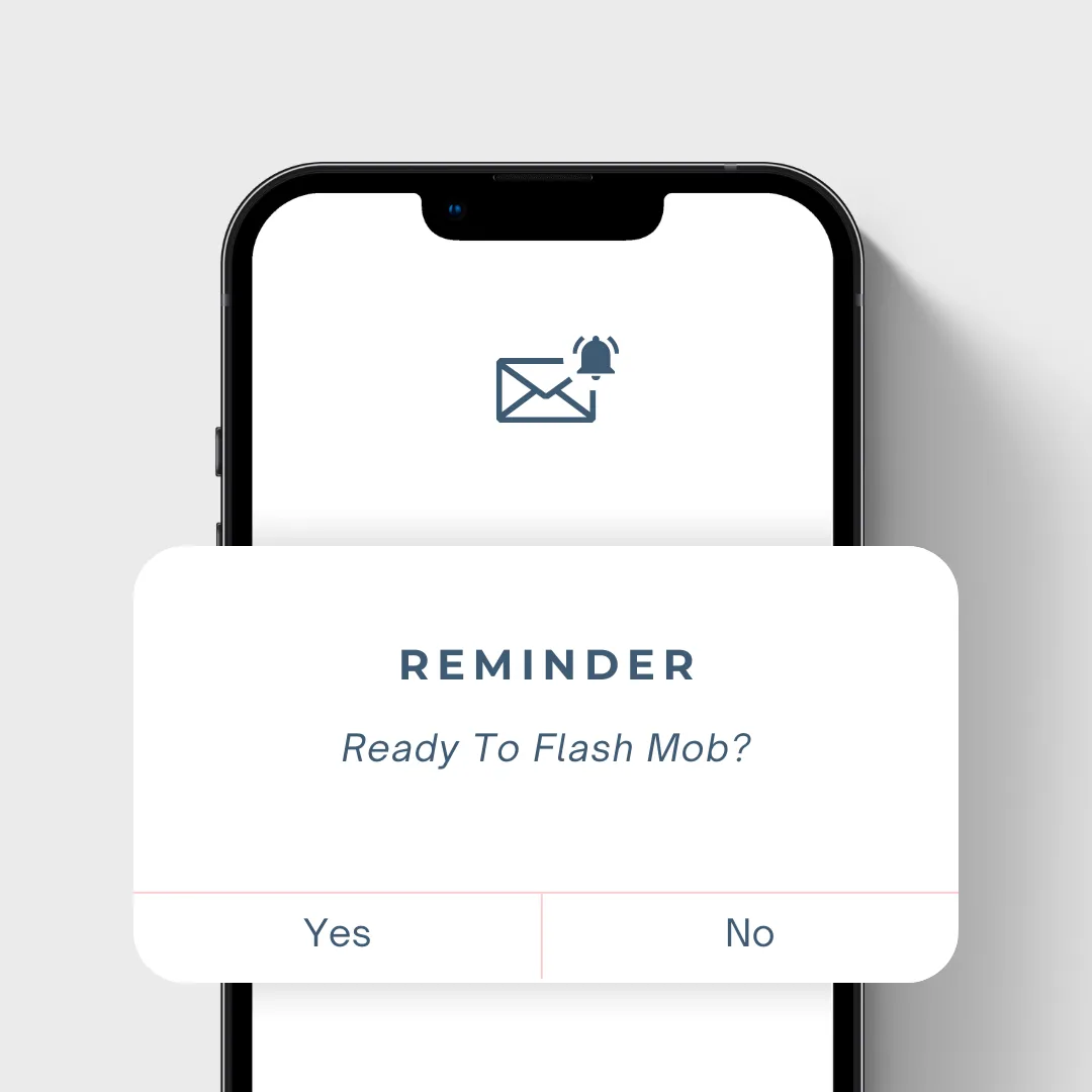 Our flash mob performances are short, high-energy bursts, just a few minutes! It’s the perfect amount of time to have a big impact, get noticed, and enjoy the thrill, without feeling overwhelmed.